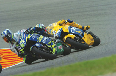 Ο Gibernau προσπάθησε με κάθε τρόπο να κλέψει τη νίκη από το Rossi, αλλά ο τελευταίος είχε άλλα σχέδια στο μυαλό του. Η βροχή που έπεσε στο δεύτερο σκέλους, έπαιξε σημαντικό ρόλο, καθώς άφησε πίσω τον Gibernau στους 3 πρώτους γύρους από τους 6 συνολικά του αγώνα.