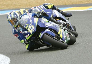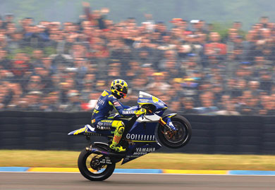 Στην πίστα στο Le Mans πραγματοποιήθηκε την Κυριακή 8 Μαΐου ο τέταρτος γύρος του παγκοσμίου πρωταθλήματος Moto GP, μπροστά σε 75.000 θεατές, οι οποίοι απόλαυσαν έναν εκπληκτικό αγώνα που προσέφερε έντονες συγκινήσεις και κράτησε αμείωτο το ενδιαφέρον μέχρι και τη γραμμή του τερματισμού. Την καρό σημαία είδε πρώτος για μια ακόμα φορά ο Valentino Rossi από τη σέλα της Yamaha M1, με μικρή διαφορά όμως και έπειτα από συναρπαστική μονομαχία με τον αναβάτη της Movistar Honda, Sete Gibernau. Στα πολύ θετικά στοιχεία που άφησε πίσω του το γαλλικό GP, συγκαταλέγονται η εξαιρετική παρουσία του Colin Edwards που τερμάτισε τρίτος, η επάνοδος της Ducati στις καλές εμφανίσεις με "οδηγό" τον Loris Capirossi, που κατέκτησε τελικά την έβδομη θέση, αλλά και η "αφύπνιση" του Gibernau που κονταροχτυπήθηκε μέχρι τέλους με τον Rossi, αποδεικνύοντας ότι μπορεί να ανταγωνιστεί τον Ιταλό παγκόσμιο πρωταθλητή. Στα καθαρά αγωνιστικά θέματα, η δυνατή βροχή που έπεσε στα πρωινά δοκιμαστικά μπορεί να μην επηρέασε την κατάσταση της πίστας, η οποία ήταν στεγνή, αλλά δυσκόλεψε το έργο των ομάδων όσον αφορά το στήσιμο των μοτοσικλετών, καθώς έπρεπε να συμπεριλάβουν στα σχέδιά τους και το ενδεχόμενο βροχόπτωσης. Από την πρώτη γραμμή της εκκίνησης έφυγαν κατά σειρά οι Rossi, Edwards και Melandri, αλλά σύντομα τα δεδομένα άλλαξαν. Η άσχημη εκκίνηση του Valentino τον έριξε στην έκτη θέση, ενώ καλό ξεκίνημα είχαν οι Hayden και Capirossi, οι οποίοι ανέβηκαν στη δεύτερη και τρίτη θέση, αντίστοιχα, πίσω από τον Colin Edwards. Από τον 3ο γύρο ξεκίνησε η επίθεση του Rossi, o οποίος αναρριχήθηκε στην τέταρτη θέση, περνώντας κατά σειρά τους Nakano και Melandri, την ίδια ώρα που ο Gibernau μαχόταν με τον Max Biaggi για την έβδομη θέση. Οσο περνούσαν οι γύροι, ο "γιατρός" ανέβαζε το ρυθμό του και ο 9ος τον βρήκε στη δεύτερη θέση πίσω από τον Edwards και μπροστά από τους Hayden και Capirossi. Παράλληλα, από τα μέσα του αγώνα εξαπέλυσε την επίθεση του κι ο Gibernau, ο οποίος γυρνώντας συνεχώς κάτω από το 1.34΄΄ κατάφερε να καλύψει το χαμένο έδαφος και στο 18ο γύρο να προσπεράσει τον Rossi και να βρεθεί στη δεύτερη θέση. Από εκείνη τη στιγμή και ενώ απέμεναν 10 γύροι για την πτώση της καρό σημαίας, ξεκίνησαν οι σκληρές μονομαχίες των τριών προπορευόμενων αναβατών, οι οποίες έμελλε να διαρκέσουν μέχρι τέλους. Στον 22ο γύρο, ο Rossi επανέκτησε τη δεύτερη θέση από τον Sete, ενώ λίγο αργότερα πέρασαν και οι δύο στην ίδια στροφή τον Edwards, ο οποίος βρέθηκε από την πρώτη θέση στην τρίτη. Η μάχη συνεχίστηκε με τον Gibernau να είναι κολλημένος στον πίσω τροχό του Rossi ψάχνοντας το λάθος που θα του επέτρεπε να τον προσπεράσει, ο Ιταλός όμως οδήγησε υποδειγματικά χωρίς να αφήσει περιθώρια στον Ισπανό, με αποτέλεσμα να πανηγυρίσει μία ακόμα νίκη και ως εκ τούτου να αποσπαστεί 37 βαθμούς στον πίνακα βαθμολογίας του πρωταθλήματος.