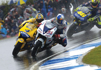 Συναρπαστικές στιγμές χάρισε το circuit στο Donington Park. Στη βρεγμένη πίστα το θέαμα ήταν πλούσιο, καθώς οι πλαγιολισθήσεις έρχονταν σε κάθε στροφή, ενώ παράλληλα οι εναλλαγές θέσεων ήταν συνεχείς. Οσο για τον τελικό νικητή; Ποιος άλλος... Valentino!