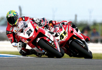 Ο 5ος αγώνας του Παγκοσμίου πρωταθλήματος SBK δεν επιφύλασσε εκπλήξεις για την πρώτη θέση. Η απόλυτη κυριαρχία του Troy Bayllis έχει εδραιωθεί και ξεδιπλώνοντας το αστείρευτο ταλέντο του ανεβαίνει στο ψηλότερο σκαλί του βάθρου και στα δύο σκέλη. Ο μόνος που μπόρεσε να αμφισβητήσει τον Αυστραλό αναβάτη ήταν ο Haga, με τον οποίο έδωσαν μάχη και είχαν αρκετές εναλλαγές για την πρώτη θέση. Μετά από μια εμπλοκή στην πρώτη στροφή της πίστας, που θα θέσει εκτός αγώνα πολλούς αναβάτες, αναγκάζει τους διοργανωτές να βγάλουν κόκκινη σημαία. Στη δεύτερη εκκίνηση ο Noriyuki Haga με τη Yamaha του 'ξεχύνεται' μπροστά και καταδιώκεται από τον Troy Bayliss με Ducati. Οι δύο τους θα δώσουν φοβερές μάχες μέχρι την καρό σημαία που θα δει πρώτος ο Αυστραλός οδηγός. Ο Jame Toseland με το δυνατό Ten Kate Honda, αν και ξεκίνησε από πολύ πίσω, κατάφερε να αναρριχηθεί στην τρίτη θέση και αν είχε μερικούς γύρους θα μπορούσε να αποτελέσει απειλή για τους προπορευόμενους. Τον καλύτερό του τερματισμό για τη φετινή χρονιά είχε ο Ruben Xaus στην τέταρτη θέση και την πεντάδα έκλεισε ο Andrew Pitt.