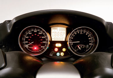 Δε σας κρύβουμε ότι το πρώτο πράγμα που σκεφτήκαμε μόλις είδαμε για πρώτη φορά φωτογραφίες του MP3, ήταν ότι θα είχε το πλάτος ενός…Atos! Καμία σχέση όμως. Μπορεί να έχει δύο τροχούς μπροστά, αλλά το συνολικό του πλάτος δεν ξεπερνάει τα 775 χιλιοστά, νούμερο το οποίο αντιστοιχεί στα περισσότερα mega-scooter. Η μάσκα είναι αυτοκινητιστικής σχεδίασης, αλλά προσφέρει πολύ καλή προστασία από τον αέρα, ενώ η ζελατίνα θα καλύψει ακόμα και αρκετά ψηλούς αναβάτες, οι οποίοι μάλιστα δε θα αντιμετωπίσουν πρόβλημα με τη θέση οδήγησης, η οποία φέρνει τα πόδια σε ορθές γωνίες με αρκετό κενό από τα γκριπ. Όσο το ύψος σας ανεβαίνει, τόσο το κενό αυτό μειώνεται και η ζελατίνα θα σας φανεί μικρή. Οι τροχοί έχουν διάμετρο 12 ιντσών (αλλά μην ξεχνάμε ότι είναι τρεις), ενώ πλαϊνό σταντ δεν υπάρχει και δε χρειάζεται κιόλας. Κεντρικό παρ’ όλα αυτά υπάρχει. Ο αποθηκευτικός χώρος φτάνει τα 65 λίτρα (!) με δύο σημεία πρόσβασης, καθώς εκτός από τη σέλα ανοίγει και το πίσω μέρος σαν πορτ-μπαγκάζ. Θα χωρέσει δύο full-face κράνη και είναι φωτιζόμενος, ενώ κάτω από τη σέλα υπάρχει και το αδιάβροχο κάλυμμά της. Το πάνελ παρέχει πληροφορίες για τα πάντα και είναι πολύ ευανάγνωστο, ενώ ανάμεσα από τα πόδια του αναβάτη υπάρχει και χειρόφρενο, το οποίο ακινητοποιεί την μπρος-πίσω κίνηση και όχι τη…δεξιά-αριστερά, καθώς αυτή ‘‘κλειδώνει’’ από το μπουτόν το οποίο αναφέραμε παραπάνω.
