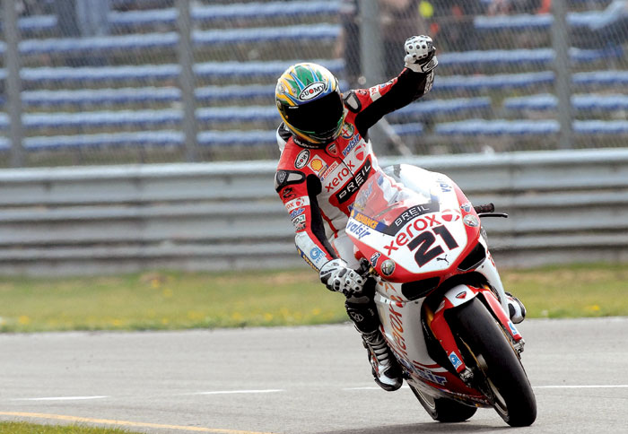 “Φυσικά είμαι πολύ χαρούμενος, ήταν ένα φανταστικό διήμερο,” δήλωσε ο 39χρονος. “Αυτή είναι η τελευταία φορά που αγωνίζομαι με τα Superbikes στο Assen. Είναι τέλειο το γεγονός πως την πρώτη φορά που αγωνίστηκα στο Assen είχα μία μεγάλη μάχη με τον Nori, το ίδιο και φέτος που είναι η τελευταία. Την πρώτη χρονιά κέρδισε, οπότε ήταν η σειρά μου. Τα πήγαμε πολύ καλά αυτό το σαββατοκύριακο και κατάφερα να πάρω την pole και να κάνω μία πολύ καλή εκκίνηση και στους δύο αγώνες. Νομίζω πως οδηγώ για την καλύτερη ομάδα στα paddock αυτή τη στιγμή, γιΆ αυτό και ευχαριστώ τους ανθρώπους της Ducati Xerox Team, ξανά, για τη σκληρή δουλειά, οδεύοντας προς τη Monza με 50 βαθμούς επιπλέον στις αποσκευές μας. ”