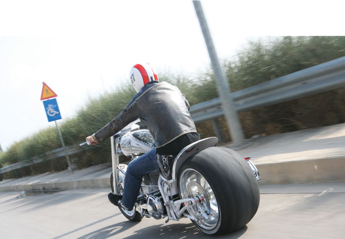 Το bobber που σας παρουσιάζουμε είναι μια μοναδική κατασκευή για τα ελληνικά δεδομένα, που μέχρι σήμερα όμοιά της είχαμε δει μονάχα μέσω της τηλεόρασης και της εκπομπής Αmerican Chopper. Η πληθωρική από όλες τις απόψεις μοτοσικλέτα κλέβει τις εντυπώσεις και καταφέρνει να μονοπωλήσει το ενδιαφέρον απ’ όπου και αν περάσει. Ακόμα και οι αερογραφίες της θα σχολιαστούν, με την ιδιαιτερότητα των σχεδίων και την ποιοτική τους εφαρμογή πάνω σε κάθε σημείο του bobber. Πληθωρικό, ξεχωριστό και απειλητικό, το μοντέλο στέκει μερικά μέτρα πιο μακριά και δεν ξέρεις ποιο συναίσθημα είναι επικρατέστερο μέσα σου. Θέλεις να μείνεις και να το χαζεύεις με τις ώρες, αλλά ταυτόχρονα να τρέξεις, να το καβαλήσεις και να χαθείς μαζί του.