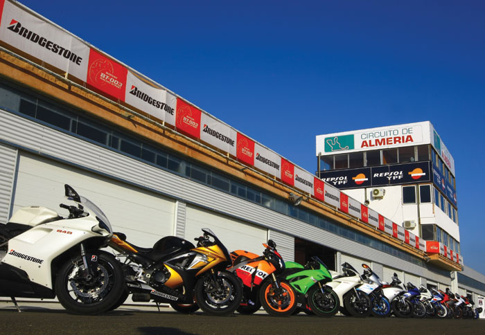 Τέλος, η μοτοσικλέτα της BMW HP2 Sport αποδείχθηκε η πιο ακατάλληλη για την πίστα της Αλμερίας, αλλά ακόμα και εκείνη φορώντας τα νέα ελαστικά της Bridgestone κατάφερε να γράψει μερικούς γρήγορους γύρους.