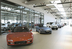 Στα μάτια ενός μοτοσικλετιστή ξεχωρίζει αμέσως το NR 750, η μοναδική μοτοσικλέτα παραγωγής με οβάλ έμβολα και 32 βαλβίδες, μια ακριβοθώρητη τεχνολογική άσκηση υπεροχής που μόνο η Honda θα μπορούσε να φέρει εις πέρας. Λίγο πιο δίπλα, η σύγχρονη ρεπλίκα του Dream 50, ίσως η ομορφότερη μοτοσικλέτα στα 50 κ.εκ. που έχει κατασκευαστεί, αντίγραφο του κλασικού αγωνιστικού μοντέλου RC 110 Racer του 1962! Δίπλα στο γραφείο υποδοχής υπάρχει το νέο Fury, μια cruiser μοτοσικλέτα 1.300 κ.εκ., φτιαγμένη για την αμερικάνικη αγορά, έξυπνα σχεδιασμένη για να θυμίζει μικρής παραγωγής, special made custom. Για τους λάτρεις του αυτοκινήτου, έχουμε και NSX. Το πρώτο αυτοκίνητο παραγωγής με αλουμινένιο monocoque πλαίσιο, έφερε τον V6 κινητήρα στο κέντρο, διέθετε VTEC και κίνηση στους πίσω τροχούς. Και εδώ σάς παραθέσαμε μόνο λίγα από τα εκθέματα της ακαδημίας. Ωστόσο, η ακαδημία δεν είναι ένα μουσείο. Κάθε άλλο. Έχει φτιαχτεί για εκπαίδευση και οι χώροι για αυτό το σκοπό είναι μοναδικοί. Δρόμοι γύρω από τα κτίρια, ασφάλτινη πίστα, πίστα για ATV, κ.λπ. Τα εργαστήρια όπου εκπαιδεύονται οι τεχνικοί στο service δεν θυμίζουν με τίποτα τα συνεργεία που ξέρουμε. Πεντακάθαρα, με τελευταίας γενιάς μηχανήματα, με εύκολα προσβάσιμες παροχές ρεύματος, πεπιεσμένου αέρα και με τόσα ακόμη. . Ηλεκτρική αυτάρκεια Πίσω από τη ρεσεψιόν, εκτός από τους πίνακες όπου μπορεί κανείς να μάθει τα πάντα για την ιστορία της Honda, με φωτογραφίες και χρονολογίες, υπάρχει μια ψηφιακή οθόνη με πολύ ενδιαφέροντα γραφήματα. Στην οθόνη αυτή μπορεί να δει κανείς real time, γραφικές απεικονίσεις με την παραγωγή ηλεκτρικού ρεύματος από τα φωτοβολταϊκά συστήματα της ακαδημίας και να τις συγκρίνει με των προηγούμενων ημερών, εβδομάδων, κ.λπ. Σημειώστε ότι η ακαδημία καταφέρνει να είναι αυτάρκης σε ηλεκτρισμό, πωλώντας μάλιστα το περισσευούμενο ρεύμα στο γερμανικό δίκτυο ηλεκτρισμού!