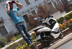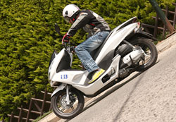 και παρουσιάζει το ελπιδοφόρο PCX 125. Αν και αυτή τη στιγμή φιγουράρει στην πρώτη θέση στον τομέα της πράσινης τεχνολογίας που διαθέτει, αυτό δεν αναγράφεται πουθενά πάνω του. Επίσης, όπως και στο Pantheon, έτσι και στο PCX, αν δεν έχεις γνώση για τον ακριβή κυβισμό του, εύκολα θα μπορέσεις να μαντέψεις ότι πρόκειται για αρκετά μεγαλύτερης χωρητικότητας scooter. To PCX διαθέτει άρρηκτους δεσμούς με τη φιλοσοφία της εταιρείας για κάθε πρωτοποριακό της όχημα, κρατόντας τόσο διακριτικό προφίλ που ανεβαίνοντας στη σέλα του και μη έχοντας ιδιαίτερη γνώση επί του θέματος, θα πιστέψεις ότι όλο το χρονικό περιθώριο κατασκευής του δαπανήθηκε από την Honda για να το κάνει ποιοτικό, πολυτελές και άνετο.
