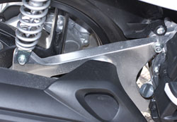 Στη λογική του SΗ, το PCX διαθέτει τριγωνικό ψαλίδι αλουμινίου, που βάζει το λιθαράκι του στην τόσο καλή οδική συμπεριφορά τουμοντέλου.