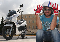 Αν και έχοντας διασχίσει σχεδόν όλη την Αθήνα, τόσο το PCX όσο και ο οδηγός του διατηρούν θετικό και αισιόδοξο πνεύμα.