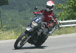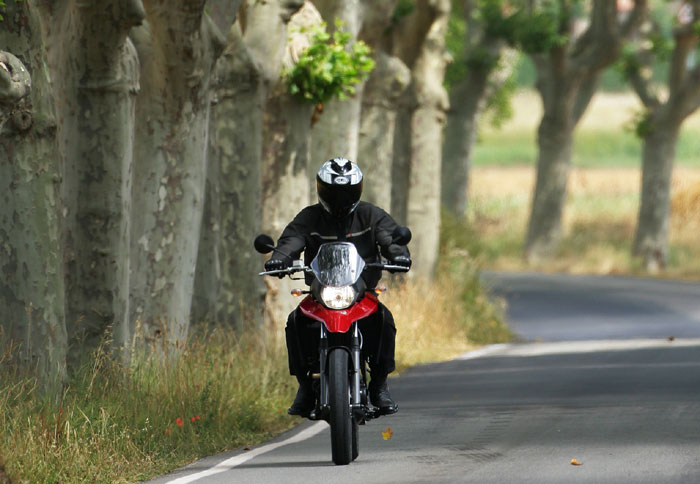 Το στιβαρό πλαίσιο και το σφιχτό set up των αναρτήσεων επιτρέπουν υψηλή μέση ωριαία ταχύτητα στο ταξίδι (πάνω από τα 150 χλμ./ώρα), ακόμη και με δύο άτομα και αποσκευές. Hot spot: Εκκεντρικό