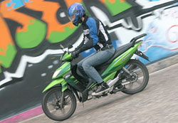 Στο πράσινο χρώμα της Kawasaki και με αρκτικόλεξο που παραπέμπει στα supersport μοντέλα της εταιρείας, το ZX-130 απευθύνεται σε όσους επιθυμούν ένα εντυπωσιακό sport παπί που να μην μένει μόνο… στα λόγια. Οι αναρτήσεις είναι πολύ καλά σεταρισμένες, ενδοτικές στην αρχική τους διαδρομή και πιο σφιχτές στη συνέχεια, με αποτέλεσμα αφενός να φιλτράρονται οι ανωμαλίες του δρόμου, αφετέρου να προσφέρουν σαφήνεια και πληροφόρηση όταν ο ρυθμός ανέβει. Ο κινητήρας έχει την ισχύ για να στείλει τη βελόνα του ταχύμετρου στα 130 χλμ./ώρα (με ευνοϊκές συνθήκες), ωστόσο τα φρένα στερούνται δύναμης για να μειωθεί άμεσα και δραστικά η ταχύτητα. Η απόδοσή τους δεν συνιστά βέβαια πρόβλημα, ενώ σε γλιστερές συνθήκες λειτουργεί προς όφελος του αναβάτη, απλώς θα θέλαμε λίγη περισσότερη ισχύ. Το ZX-130 μπορεί επίσης να κινηθεί με μεγάλη ευκολία και στην κίνηση της πόλης, όντας ευέλικτο, σταθερό και με θετικό κιβώτιο ταχυτήτων, ενώ η μεγάλη σχάρα του επιτρέπει τη φόρτωση ογκωδών αντικειμένων.