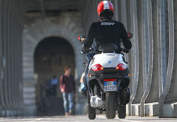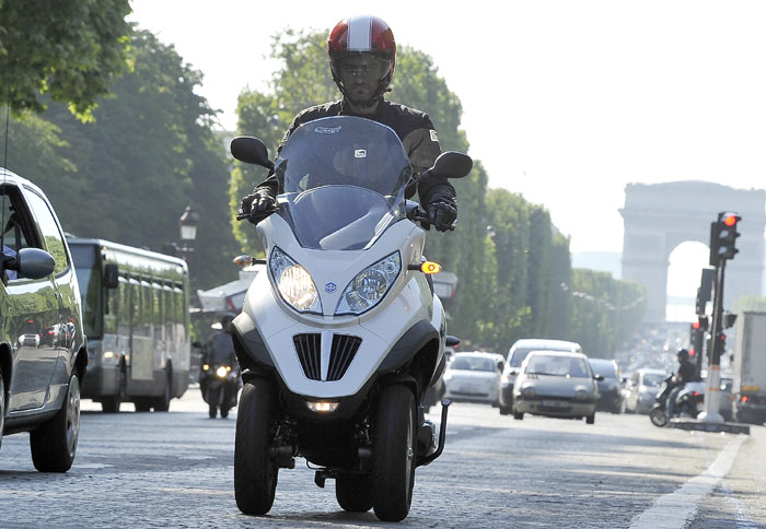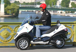 Το MP3 300 LT Hybrid συγκεντρώνει κάποιες από τις σημαντικότερες καινοτομίες της Piaggio των τελευταίων χρόνων. Πρώτα απ´ όλα, το προφανές και αυτό που πλέον γνωρίζουν ακόμη και οι πέτρες: το MP3 διαθέτει δύο μπροστινούς τροχούς, οι οποίοι αυξάνουν κατακόρυφα την ενεργητική ασφάλεια. Δεύτερον, η έκδοση LT που οδηγήσαμε και στο Παρίσι αποτελεί το μοναδικό scooter άνω των 125 κ.εκ. που μπορεί να οδηγηθεί με δίπλωμα αυτοκινήτου. Και τρίτον, το MP3 είναι υβριδικής τεχνολογίας. Αυτό σημαίνει ότι διαθέτει τον κλασικό θερμικό κινητήρα, αλλά και έναν ηλεκτρικό, ο οποίος μπορεί να κινήσει μόνος του το scooter, καθώς και να συμβάλλει στις επιδόσεις του θερμικού.