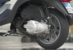 Η συνεργασία των δύο κινητήρων προσφέρει τέσσερις επιλογές κίνησης στο MP3, αλλά και ελαφρώς αυξημένες επιδόσεις.
