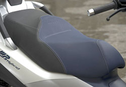 Στον τομέα των χώρων, όμως, η ηλεκτροκίνηση έφερε μια απώλεια. Η τοποθέτηση του ηλεκτροκινητήρα και των μπαταριών του είχε ως αποτέλεσμα την απώλεια του χώρου κάτω από τη σέλα, ο οποίος μπορεί να φιλοξενήσει μόνο κάποια μικροπράγματα. Ωστόσο, το "πορτ-μπαγκάζ" στο πίσω μέρος παρέμεινε ανέπαφο και θα χωρέσει ένα full face κράνος.