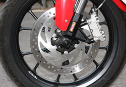 Μεγάλος σε μέγεθος και ο 300άρης δίσκος του μπροστινού, που συνοδεύεται από τετραέμβολη ακτινική δαγκάνα!