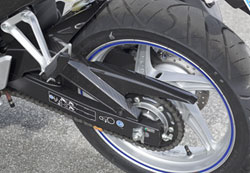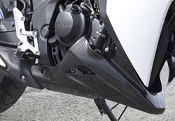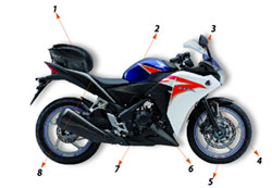 8. Κάλυμμα σέλας συνεπιβάτη, όπως στο CBR 600F. Το πλαστικό κάλυμμα με look ανθρακόνημα "αγριεύει" την εμφάνιση του CBR 250R και τοποθετείται πάνω από τη σέλα συνεπιβάτη.