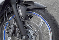 2. Προστατευτικά με "look" ανθρακόνημα για το ρεζερβουάρ. Η Honda παρέχει ένα προστατευτικό κάλυμμα για την τάπα του ρεζερβουάρ και ένα ακόμη -σε 4 διαφορετικά σχέδια- για το σημείο που έρχεται σε επαφή με τον καβάλο σας.