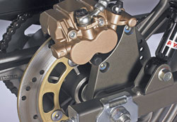 Καλή αίσθηση από τα δύο δισκόφρενα που δεν έχουν κανένα απολύτως πρόβλημα για να σταματήσουν το νέο παπί της Modenas ακόμη και από την τελική του.