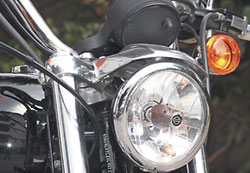 Οι λεπτομέρειες κυριαρχούν πάνω στο Sportster, απ´ όποια μεριά και να το κοιτάξεις. Τα μαρσπιέ βρίσκονται… εκεί που τα έχουμε συνηθίσει και αυξάνουν σημαντικά την ευκολία στην καθημερινή μετακίνηση. Πάντως, θέσεις υπάρχουν έτοιμες για να τοποθετήσετε άλλα στο εμπρός μέρος του πλαισίου.