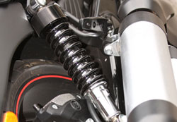Οι αναρτήσεις αποδίδουν ικανοποιητικά και απορροφούν ένα αρκετά μεγάλο μέρος των ανωμαλιών. Τα πίσω αμορτισέρ ρυθμίζονται ως προς την προφόρτιση.