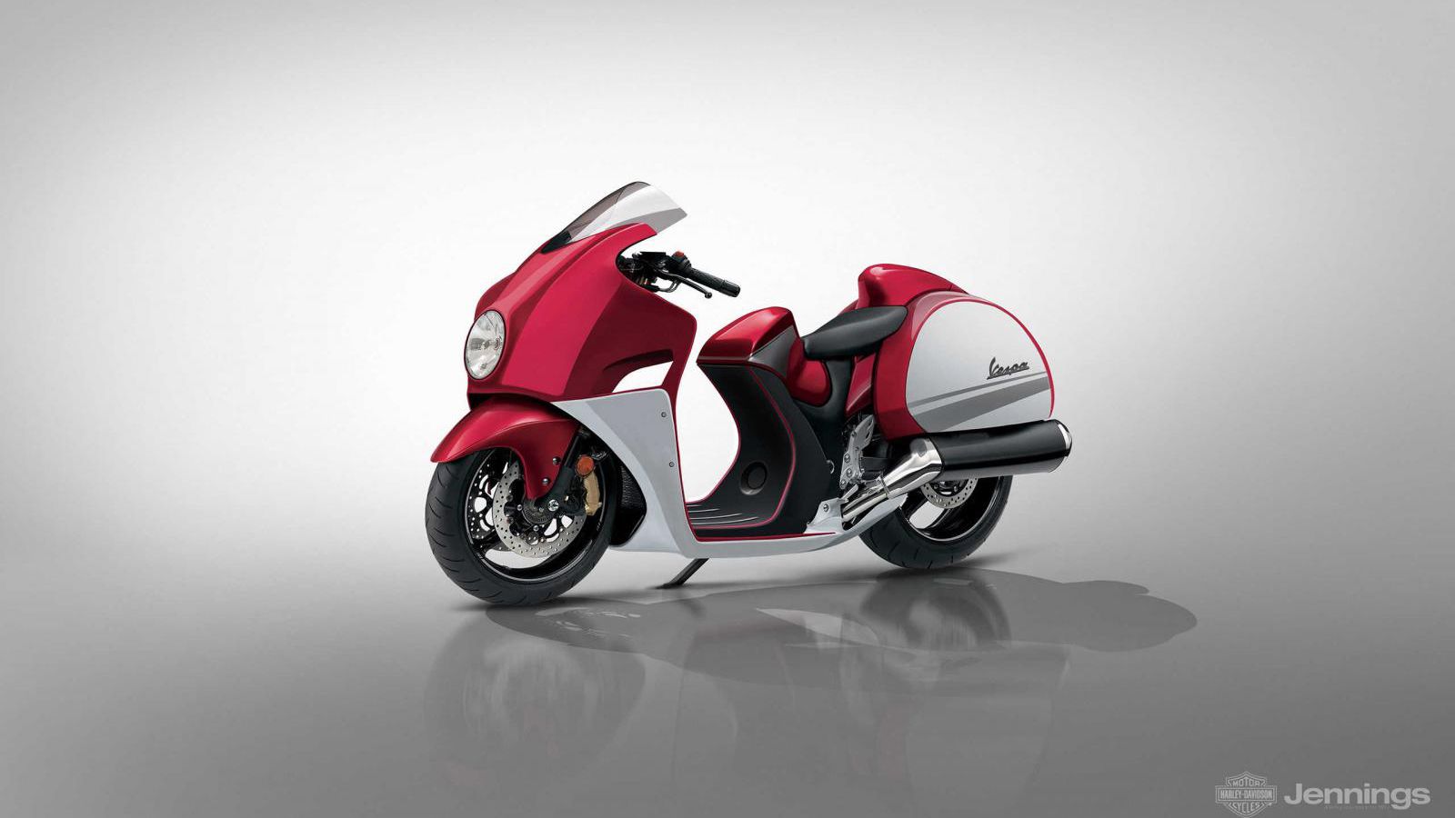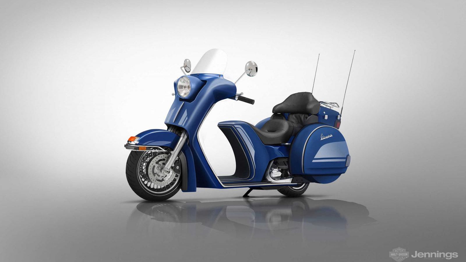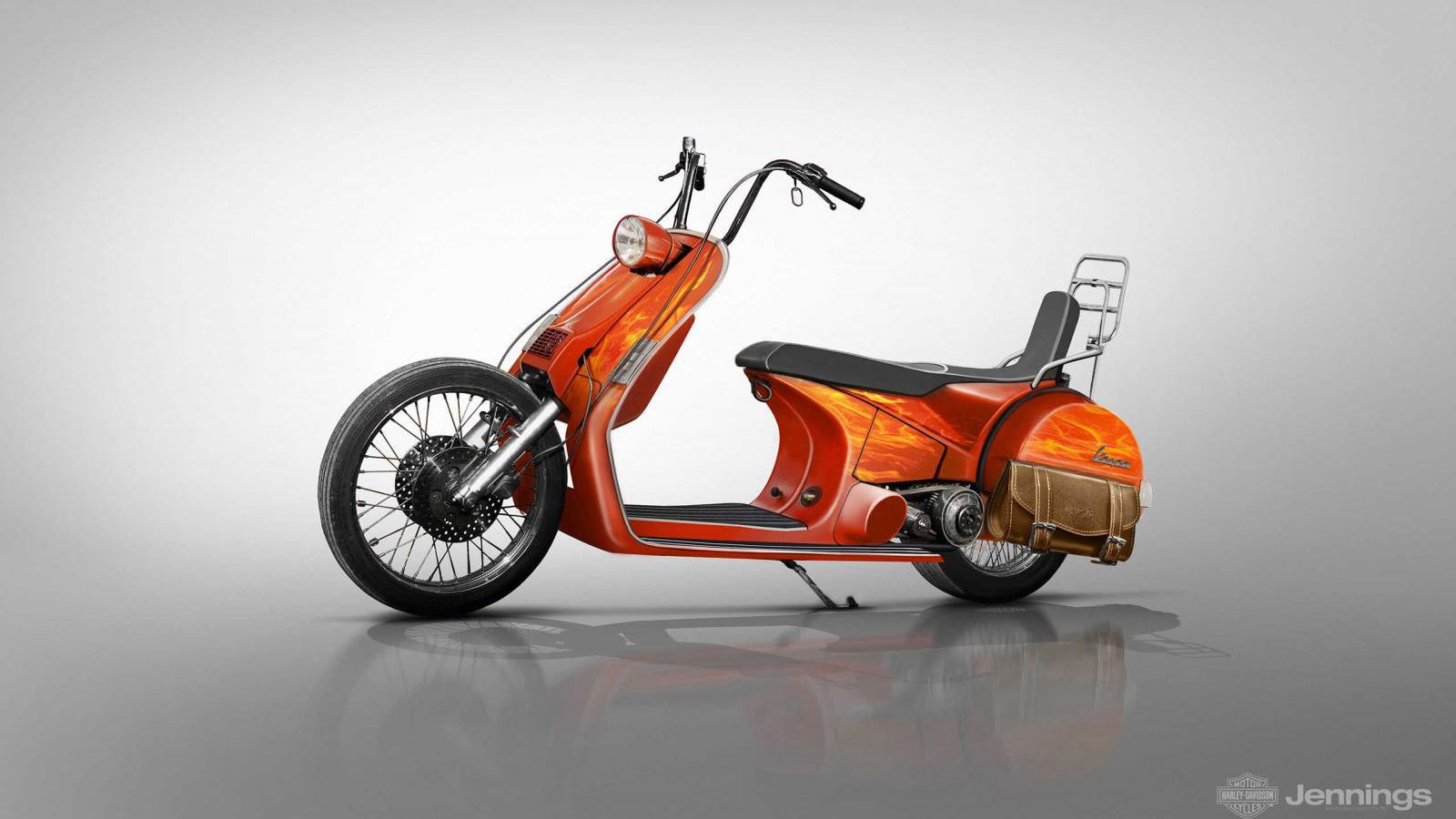 Η εταιρεία Jennings Motor Group, που ανήκει στη Harley-Davidson, αποφάσισε να πειραματιστεί με μια Vespa και να σχεδιάσει 6 διαφορετικές κατηγορίες μοτοσυκλετών: chopper, sport, tourist, enduro, cafè racer και ένα φουτουριστικό μοντέλο. Το αποτέλεσμα της προσπάθειας είναι τόσο ενδιαφέρον που πιθανότατα θα δούμε τα μοντέλα στην επόμενη EICMA του Μιλάνο.