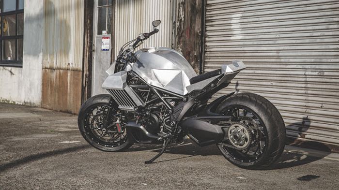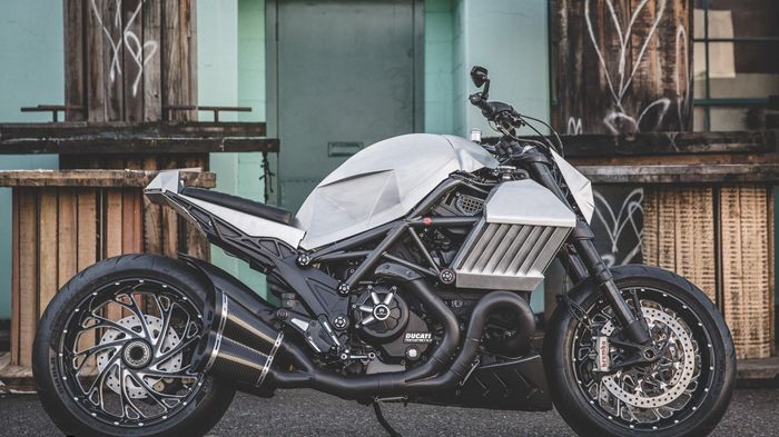 Όλα ξεκίνησαν όταν ο Arun Sharma, γενικός διευθυντής στην Αμερικανική αντιπροσωπεία της Ducati, Motocorsa, πήρε ένα τρακαρισμένο Diavel πριν από δύο χρόνια. Ήρθε σε επαφή με τον Jeff Johnson Και την Illeagle Designs, με την οποία δούλεψε για να διαμορφώσει αυτό το κομψοτέχνημα.