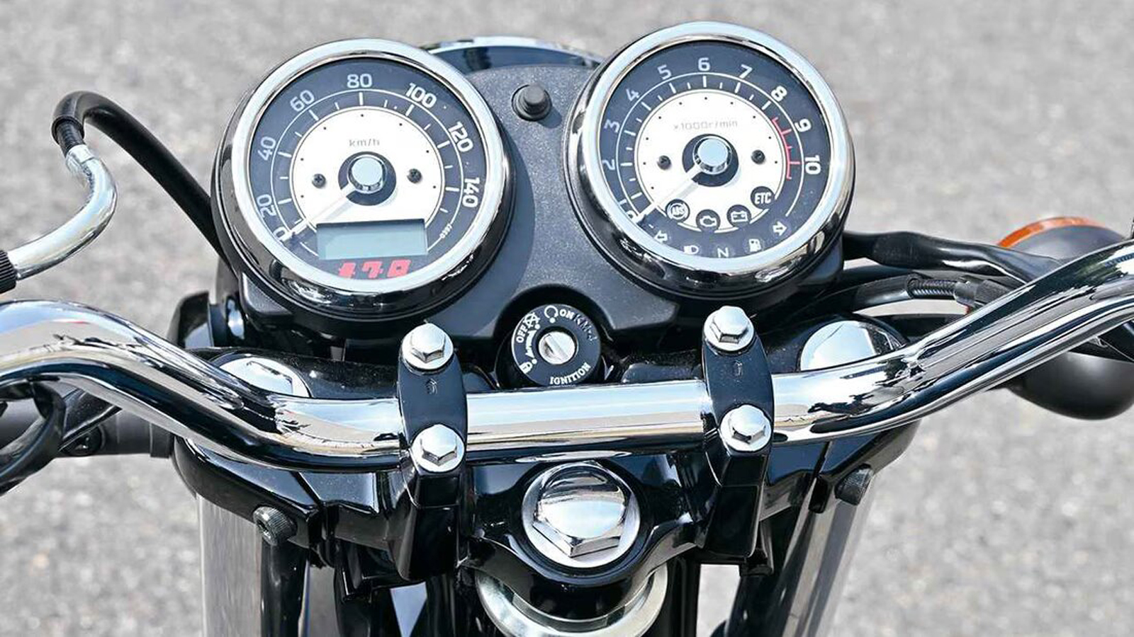 Σε αντίθεση με μανιβέλα, όπως θα περίμενε κανείς βλέποντας τις W 230 και Meguro S1, διαθέτουν μίζα, αλάρμ και μία μικρή LCD οθόνη, ενσωματωμένη στα στρογγυλά όργανα ενδείξεων με τις δύο συμμετρικά τοποθετημένες βελόνες για την ένδειξη της ταχύτητας και των στροφών του κινητήρα. Ταυτόχρονα, όλα τα φωτιστικά σώματα είναι LED και οι δύο μοτοσυκλέτες είναι ολόιδιες όσον αφορά τα τεχνικά τους χαρακτηριστικά με τις διαφορές να μένουν στο αισθητικό κομμάτι και την εξωτερική τους εμφάνιση. Η ονομασία Meguro έχει ιστορία 100 ετών στην ιαπωνική εταιρεία Murato που ιδρύθηκε το 1924. Η συνεργασία της με την Kawasaki Heavy Industries κατέληξε με την δεύτερη να παίρνει πλήρως τον έλεγχο της πρώτης την δεκαετία του 1960, ενώ η Kawasaki αναβίωσε το όνομα της Meguro το 2020 με το Meguro K3.