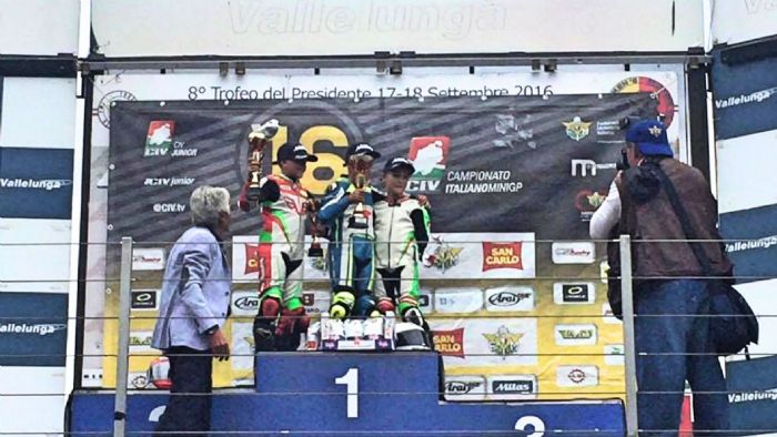 Δελτίο τύπου: Ο Αγώνας στην Valelunga για το Ιταλικό Πρωτάθλημα CIV είδε έναν Έλληνα οδηγό στο βάθρο των νικητών! Ο 11χρονος Γιάννης Περιστεράς που αγωνίζεται στην κατηγορία ενιαίο τύπου Metrakit, είχε δείξει πολύ καλά στοιχεία σε προηγούμενους αγώνες της χρονιάς, αλλά στην γνωστή Ιταλική πίστα βρέθηκε περισσότερο προπονημένος από ποτέ και με θέληση για ένα καλό αποτέλεσμα. Ήδη στις χθεσινές κατατακτήριες δοκιμές πήρε την 2η θέση και στον Αγώνα σήμερα έδωσε μια σκληρή μάχη σώμα με σώμα κυριολεκτικά με δυνατούς αντιπάλους από την Ιταλία, τις ΗΠΑ και την Ελβετία. Τελικά πήρε την 2η θέση και ανέβηκε για πρώτη φορά στο βάθρο των νικητών.