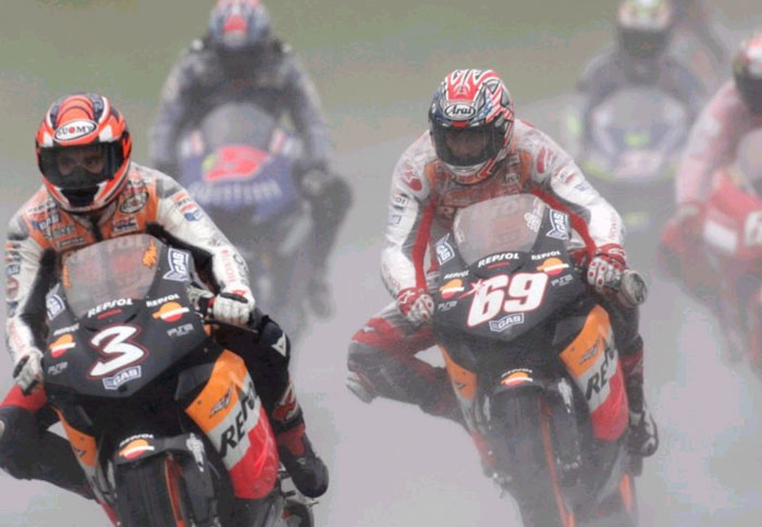 Με υψηλό το ηθικό ο Nicky Hayden, κερδίζοντας το αμερικάνικο Grand Prix, πήγε στην Αγγλία για να συνεχίσει το χτίσιμο των επιτυχιών. Όμως αυτό δεν κατέστη δυνατόν. Από την 2η γραμμή του grid o αμερικάνος αναβάτης και από την 3η ο ομόσταβλός του Max Biaggi ξεκίνησαν τον αγώνα. Στον τρίτο μόλις γύρο, ο Hayden, είχε πτώση με συνέπεια να «τραυματίσει» την μοτοσικλέτα του και να εγκαταλείψει. Ο Biaggi, δεν πρόλαβε να συμπληρώσει καν γύρο, καθώς έπεσε πριν συμπληρωθεί ο 1ος. Στην συνέχεια κατάφερε να σηκώσει την μοτοσικλέτα του και να ξαναμπεί στον αγώνα, όχι όμως για πολύ, γιατί στον 4ο γύρο διπλασίασε τις πτώσεις του με συνέπεια να φτάσει μέχρι τα box και να εγκαταλείψει.