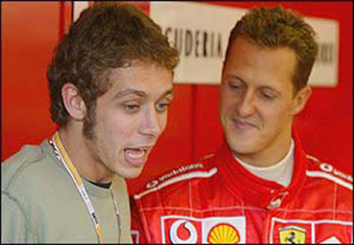 Οι παγκόσμιοι πρωταθλητές Valentino Rossi και Michael Schumacher, θα αναμετρηθούν στην πίστα της Βαλένθια στους τέσσερις τροχούς. Ήδη η Ferrari βρίσκεται στην Καταλονία για δοκιμές και θα μεταβεί στην Βαλένθια για να συναντήσει την Yamaha και τον Rossi.