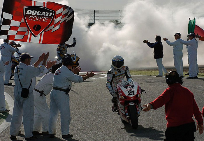 Ένας συναρπαστικός αγώνας, έτσι όπως έπρεπε να είναι, για το τέλος της φετινής αγωνιστικής χρονιάς στα WSBK. O πρωταθλητής, από την Ίμολα, Τρόι Μπέιλις συμπλήρωσε τη 12η νίκη του, ενώ ο βρετανός Μάικ Τόουσλαντ εξασφάλισε την δεύτερη θέση του στο πρωτάθλημα μπροστά από τον Χάγκα.