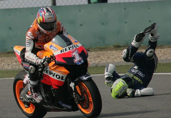 · Toni Elias: “Είμαι απογοητευμένος που δεν κατάφερα να τερματίσω τον αγώνα. Είχαμε κάνει πολύ καλές ρυθμίσεις στη μοτοσικλέτα. Βρισκόμουν πίσω από το Hayden την ώρα που έκλεινε τη γραμμή του και δεν μπόρεσα να αποφύγω τη σύγκρουση με τον πίσω τροχό του. Συμβαίνουν αυτά στους αγώνες, αλλά δεν παύουν να κόβουν σημαντικούς βαθμούς.”
