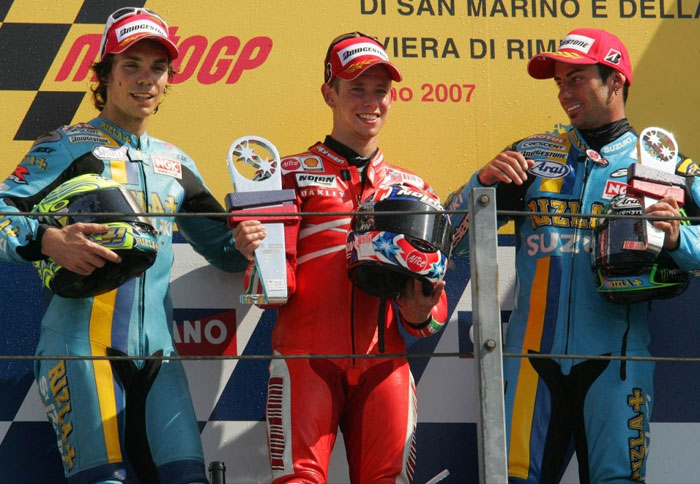 Την 8η νίκη της καριέρας του για το 2007 πρόσθεσε στο ενεργητικό του ο νεαρός Αυστραλός αναβάτης της εργοστασιακής Ducati, ενώ οι δύο οδηγοί της Rizla Suzuki του έκαναν παρέα στη δεύτερη και τρίτη θέση του βάθρου. Άτυχος για άλλη μια φορά ήταν ο Rossi που δε κατάφερε να τερματίσει.