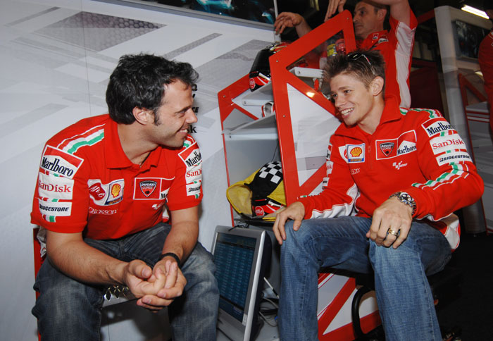 Μία μέρα μετά την ιστορική νίκη του Casey Stoner στο Grand Prix του San Marino, που έδωσε στη Ducati την πρώτη νίκη Moto GP σε άσφαλτο της πατρίδας της, οι δύο αναβάτες βρέθηκαν και πάλι στην ίδια πίστα ώστε να κάνουν τις προκαθορισμένες δοκιμές με τις μοτοσικλέτες τους.