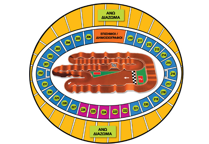 Οι τιμές των εισιτηρίων είναι 20€ στο άνω διάζωμα, 25€ στο κάτω διάζωμα (αριθμημένες θέσεις) και 30€ στα πέντε κεντρικά τμήματα (222, 223, 224, 225, 226).