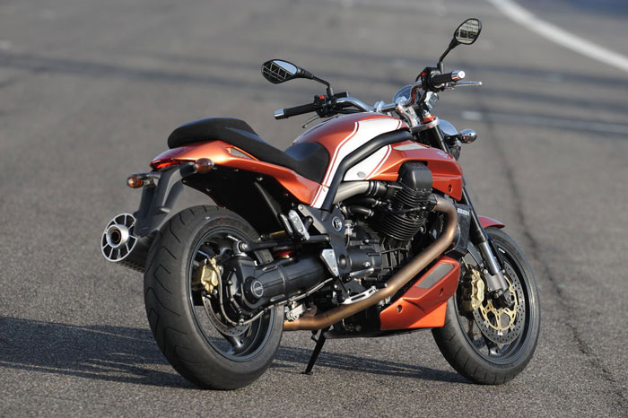Σ ότι αφορά στον κινητήρα, η αύξηση της διαμέτρου των πιστονιών αύξησε την χωρητικότητα στα 1.420 κ.εκ., τοποθετήθηκε νέος ψεκασμός, βαλβίδες τιτανίου και παράλληλα έγιναν όλες οι απαραίτητες μετατροπές προκειμένου να εγκατασταθεί κυκλοφορία ψυκτικού υγρού. Παρ΄ όλο τις ριζικές αυτές τροποποιήσεις, διατηρούνται οι κλασσικές Guzzi ψήκτρες, ενώ το ψυγείο είναι καλά κρυμμένο πίσω από ανθρακονημάτινες γρίλιες, για να μην χαλάσει το «αερόψυκτο look».