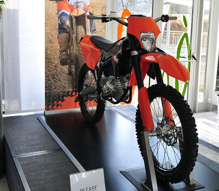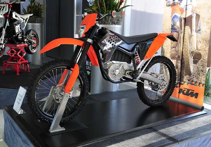Σε περίοπτη θέση βρισκόταν το E-Bike της KTM, με το οποίο είχαμε ασχοληθεί πριν λίγο καιρό στο mototriti.gr. Πρόκειται για μια off-road ηλεκτροκίνητη μοτοσικλέτα η οποία τροφοδοτείτε από μία συστοιχία μπαταριών ιόντων του λιθίου, ικανές να προσφέρουν 40 λεπτά αυτονομίας σε συνθήκες αγώνα.