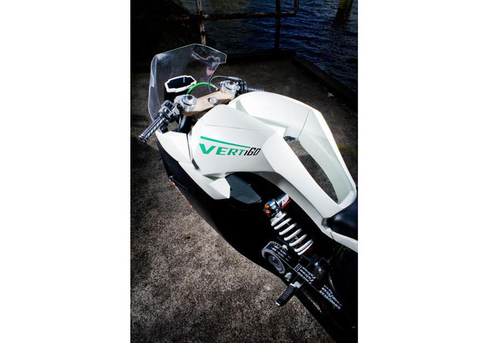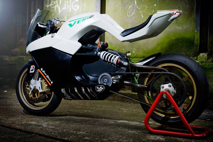 Αυτή είναι η θεώρηση των πραγμάτων για τον Marteen Timmer και φρόντισε να τη αποτυπώσει σε pixels. Το σχέδιο που παρουσίασε διατηρεί φυσικά τα κύρια χαρακτηριστικά των supersport μοτοσικλετών, ωστόσο οι καινοτομίες στη σχεδίαση είναι έκδηλες. Στο «Vertigo» όπως είναι το όνομα του μοντέλου, στοιχεία όπως ο ηλεκτροκινητήρας και οι μπαταρίες που τον τροφοδοτούν με ενέργεια, βρίσκονται συγκεντρωμένα όσο το δυνατό πιο κοντά στο κέντρα βάρους της μοτοσικλέτας. Το υποπλαίσιο λάμπει δια της απουσίας του και ο αναβάτης στηρίζεται στη συνέχεια του «ρεζερβουάρ», που εξυπηρετεί μόνο στη στήριξη του εσωτερικού μέρους των ποδιών στις στροφές.