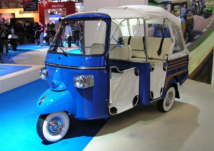 Την δεκαετία του ’50 σχεδιάστηκε το Ape Calessino από την ιταλική εταιρεία Piaggio ως ένα όχημα πού το κόστος αγοράς του ήταν φθηνό και απευθυνόταν σε μικρές εταιρείες ως διαφημιστικό όχημα. Συνεχίζετε να κατασκευάζετε μέχρι τις μέρες μας αλλά όχι πλέον στην Ιταλία