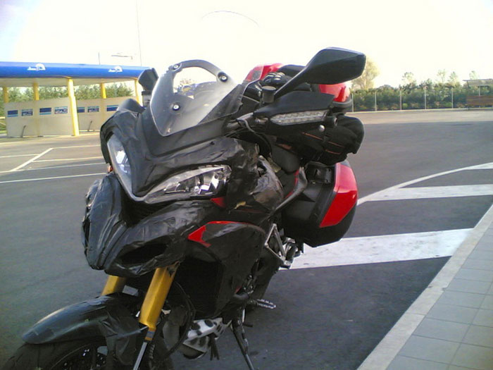 Κυρίαρχο στοιχείο του πίνακα οργάνων είναι μια μεγάλη ψηφιακή οθόνη, η οποία πλαισιώνεται από μια σειρά ενδεικτικών λυχνιών στα δεξιά της. Προφανώς αναλογικός δείκτης δεν υπάρχει…ούτε για δείγμα, ενώ κρίνοντας από την μεγάλη ψηφιακή επιφάνεια, αναμένεται να υπάρχει πληθώρα πληροφοριών και trip computer. Η συγκεκριμένη ζελατίνα πρέπει να είναι η standard σε μέγεθος, αφού φαίνεται μικρότερη σε μέγεθος σε σχέση με τη «τουριστικού» μεγέθους που είχαμε δει σε ένα άλλοset φωτογραφιών, πριν από λίγες ημέρες. Οι δύο στρόφιγγες και οι οδηγοί που διακρίνονται δεξιά και αριστερά στα πλαστικά που πλαισιώνουν τον πίνακα οργάνων, μαρτυρούν δυνατότητες χειροκίνητης ρύθμισης του ύψους της ζελατίνας, σε ένα εύρος 5 περίπου εκατοστών. Μικροί αποθηκευτικοί χώροι υπάρχουν στα πλαστικά, αν και ο ένας εξ αυτών μπορεί να είναι η ασφαλειοθήκη. Στο μπροστινό μέρος, το προτεταμένο ρύγχος φιλοξενεί τις εισαγωγές του ram-air, ενώ τα φλας είναι ενσωματωμένα στις χούφτες.