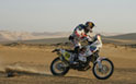 Ποιος θα το περίμενε, πως θα αποκλείονταν έτσι άδοξα τα μεγάλα δικύλινδρα της BMW και της KTM, από τους κανονισμούς. Αλλά και ποιος περίμενε στα δύο πρώτα στάδια (μέρες) του αγώνα -που πλέον παίζεται στα 450 κυβικά-, ότι στις μοτοσικλέτες θα προηγούταν ένα… Sherco, με τον Γάλλο Casteu να εκπλήσσει τους πάντες. Την τρίτη μέρα, ο Casteu έπεσε στη δεύτερη θέση, με ένα από τα φαβορί, τον επίσης Γάλλο Cyril Despres (δις νικητή στο Dakar) να περνάει με ΚΤΜ στην πρώτη θέση. Δυστυχώς τα πράγματα δεν εξελίχτηκαν το ίδιο καλά στη συνέχεια για τη Sherco, καθώς και οι τρεις αναβάτες της εγκατέλειψαν την πέμπτη μέρα, ενώ βρισκόταν στις θέσεις 2, 57 και 66 (ο Casteu έπεσε, σπάζοντας το πόδι του και εγκατέλειψε). Για την Aprilia και τα κατορθώματα της θα διαβάσετε στην επόμενη παράγραφο. Και η BMW; Έμενε στον Πορτογάλο Goncalves να υπερασπιστεί το βαρύ Βαυαρικό όνομα, και η προσπάθεια του έδειχνε να αρχίζει σχετικά καλά με μια 8η θέση. Στη δεύτερη μέρα όμως έπεσε στην… 32η θέση. Αν νομίζατε πως θα τα παράταγε, ο Πορτογάλος μαχητής την τρίτη έσκισε γάτες, κερδίζοντας 22 θέσεις, σκαρφαλώνοντας στην 10η,! Μέχρι την πέμπτη μέρα, ο Goncalves είχε φτάσει να βρίσκεται στην έκτη θέση, όμως την έκτη μέρα πρόλαβε να διανύσει 195km, πριν πέσει και σπάσει την κλείδα του, εγκαταλείποντας τον αγώνα. Ένα πολύ κακό ατύχημα είχε ως αποτέλεσμα ο Ιταλός αναβάτης της ΚΤΜ Luca Manca, να χτυπήσει το κεφάλι του, και να μεταφερθεί επειγόντως με ελικόπτερο στο νοσοκομείο. Η κατάσταση του θεωρείτο κρίσιμη, όμως μέρα με τη μέρα, η εικόνα του Ιταλού δείχνει να βελτιώνεται.
