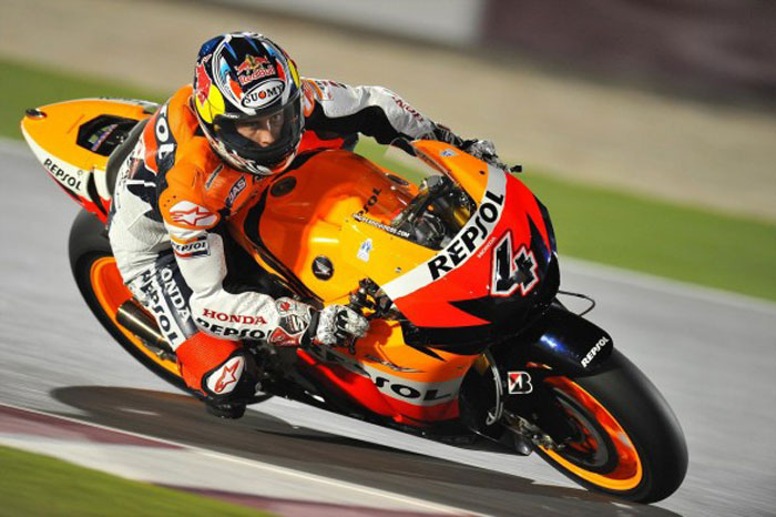 Πολλές από τις «παραδόσεις» των MotoGP διατηρήθηκαν αναλλοίωτες στο Qatar. Ποιες είναι αυτές; O Stoner να έχει τη Pole Position, ο Pedrosa να πραγματοποιεί μια εκπληκτική εκκίνηση, ο Lorenzo να οδηγά με το γνωστό απονενοημένο στυλ του και τελικά ο Rossi να κερδίζει τον αγώνα…ας πάρουμε τα πράγματα όμως από την αρχή. Οι κατατακτήριες δοκιμές δεν άφηναν καμία αμφιβολία για το ποιος είναι το φαβορί του αγώνα, αφού ο Casey Stoner διέλυσε τα χρονόμετρα, σπάζοντας το ρεκόρ που κατείχε ο ίδιος από το 2009, κατά 0,297 εκατοστά του δευτερολέπτου. Η…παράταξη στη σχάρα εκκίνησης είχε ως εξής: Stoner, Rossi, Lorenzo, De Puniet, Capirossi, Dovizioso, Pedrosa.
