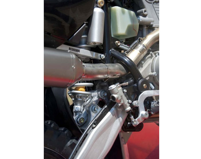 Το ρεζερβουάρ καταλαμβάνει το χώρο κάτω από τη σέλα και εκτείνεται μέχρι την ουρά, εκεί όπου βρίσκεται και η τάπα πλήρωσης καυσίμου. Το αδιαμφισβήτητο «Highlight» του TC450 όμως, είναι το μοχλικό της πίσω ανάρτησης, που δεν μοιάζει με οτιδήποτε άλλο έχει παρουσιαστεί μέχρι σήμερα. Η συγκεκριμένη διάταξη μοιάζει σαν έχει γυρίσει το ψαλίδι ανάποδα και οι αρθρώσεις και τα σκέλη του μοχλικού να έχουν έρθει στη πάνω πλευρά! Σε ότι αφορά στην εμφάνιση, το TC450 αποτελεί ένα από τα πιο όμορφα ΜΧ μοντέλα, με τις γωνιώδεις και τεθλασμένες γραμμές του να αποπνέουν απίστευτο δυναμισμό. Περισσότερες πληροφορίες για τη εκπληκτική αυτή μοτοσικλέτα, αναμένονται…οσονούπω, οπότε μείνετε συντονισμένοι στο mototriti.gr!