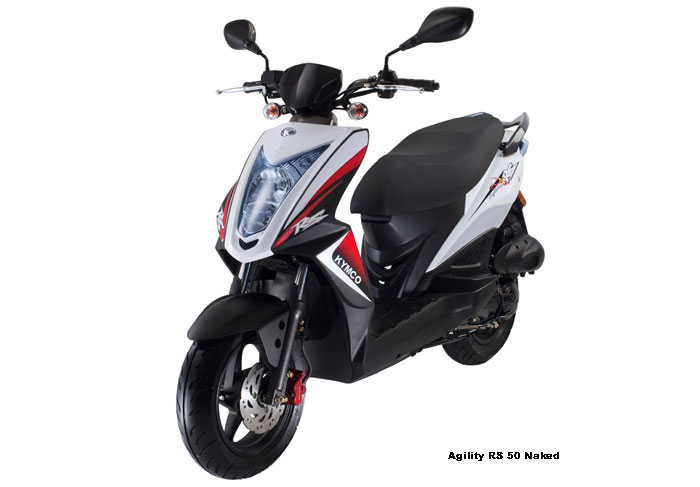 Σε ότι αφορά στη special έκδοση «RS», πρόκειται για ένα ημίγυμνο(!) scooter με δίχρονο κινητήρα 50cc, 12ρηδες τροχούς και μοναδικό στυλ. Απαλλαγμένο από τα πολλά πλαστικά και εφοδιασμένο με τιμόνι και όργανα μοτοσυκλέτας, θα εμπνεύσει τους απανταχού πιτσιρικάδες για βελτιώσεις και customizing χωρίς όρια! Τα «hi-lights» του RS αποτελούν το δισκόφρενο «μαργαρίτα» με την κόκκινη διπίστονη δαγκάνα, τα διάφανα κρύσταλλα στα φωτιστικά σώματα, οι μαύρες αλουμινένιες πεντάμπρατσες ζάντες και το μεγάλο αναλογικό στροφόμετρο, ενώ δεν υπάρχει καμμία παραχώρηση στον χρηστικό τομέα με το επίπεδο πάτωμα, το άγκιστρο στη ποδιά , τα δύο σταντ (πλάγιο και κεντρικό), τις χειρολαβές συνεπιβάτη και τον μεγάλο αποθηκευτικό χώρο κάτω από τη σέλα. Το Agility RS 50 Naked 2T διατίθεται στα 1.445 ευρώ και συνιστάται ανεπιφύλακτα σε αναβάτες κάθε ηλικίας με ανήσυχο πνεύμα!