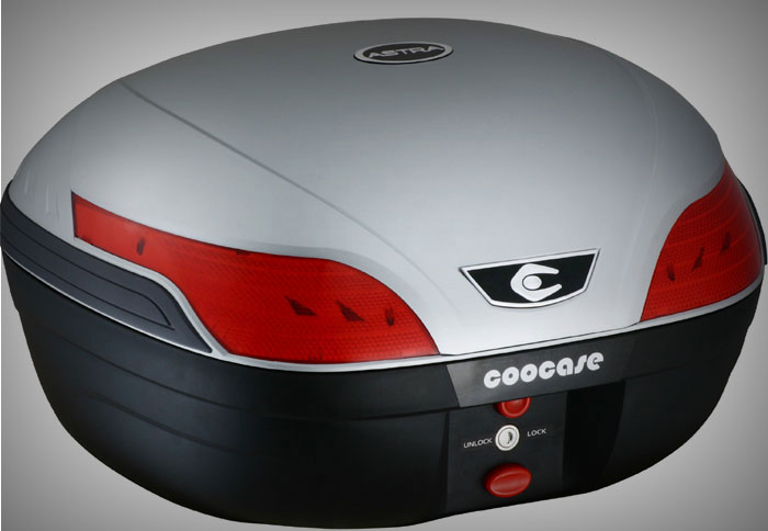 Βαλίτσα χωρητικότητας 48 λίτρων, κατασκευασμένη από υλικά υψηλής ποιότητας με αεροδυναμικό σχήμα. H Astra της Coocase είναι πρακτική και ανοίγει με το πάτημα ενός κουμπιού μετά το ξεκλείδωμα, διευκολύνοντας τον αναβάτη Διατίθεται σε μαύρο και ασημί χρώμα.