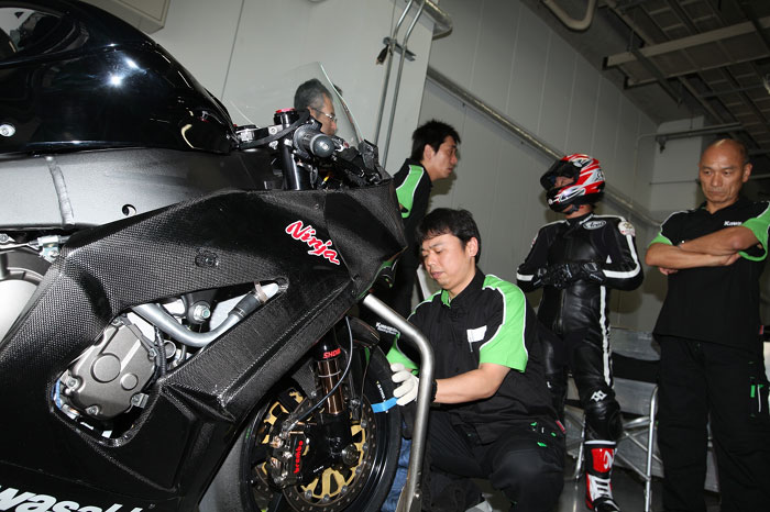 Ντυμένο με full carbon κουστούμι και με αγωνιστικών προδιαγραφών αναρτήσεις και φρένα, το racing Kawasaki ZX-10R που θα εκπροσωπήσει την εταιρεία στο πρωτάθλημα WSBK του 2011, έκανε την εμφάνιση του στη πίστα της Suzuka. Οι «πράσινοι» είχαν προηγουμένως δώσει στη δημοσιότητα μια στατική (3/4) φωτογραφία του μοντέλου, ενώ στη συνέχεια (μόλις πριν λίγα λεπτά) ακολούθησε υλικό από τις δοκιμές της μοτοσικλέτας. Βασιζόμενοι σε αυτά που βλέπουμε και με κάθε επιφύλαξη αφού πρόκειται για την αγωνιστική έκδοση, το νέο ΖΧ-10R παρουσιάζεται με πιο «αιχμηρή» σχεδίαση σε σχέση με το προηγούμενο μοντέλο.