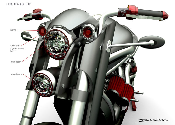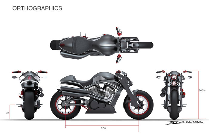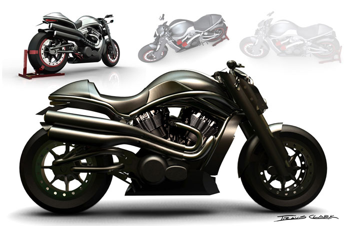 O Clark λειτούργησε έξυπνα, διατηρώντας κάποιους σχεδιαστικούς δεσμούς με τη κληρονομιά της εταιρείας, προσθέτοντας παράλληλα σύγχρονα και αρκούντως «mad-max αισθητικής» στοιχεία. Το αποτέλεσμα δεν είναι καθόλου άσχημο και όντως αποπνέει έναν αέρα εκσυγχρονισμού και ανανέωσης, χωρίς να απομακρύνεται από τη φιλοσοφία της εταιρείας. Ο Clark οραματίζεται μάλιστα δύο εκδόσεις, μία «βασική» με το μικρό κινητήρα των Sportser και USD πιρούνι και μία με τον υγρόψυκτο κινητήρα των V-Rod και leading link μπροστινή ανάρτηση, δηλαδή μια εξελιγμένη μορφή του μπροστινού που είχαν κάποτε τα παπιά. Μακάρι να τα δούμε να υλοποιούνται από τη Harley Davidson…