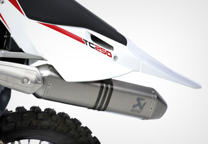 Μία ακόμα ιδιαίτερα αξιόλογη καινοτομία σε μία μοτοσικλέτα motocross μαζικής παραγωγής είναι η χρήση της εξάτμισης Akrapovic που έχει σχεδιαστεί ειδικά για τη νέα TC250, η οποία διαθέτει τελικό από τιτάνιο και αποτελεί μέρος του εργοστασιακού εξοπλισμού της μοτοσικλέτας.