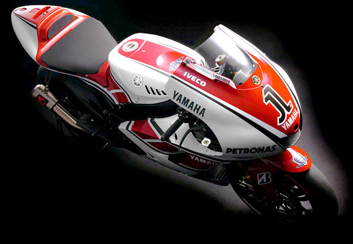 Έτσι, θα ξεχάσουμε για λίγο το μπλε χρώμα με το οποίο έχει ταυτιστεί η εταιρεία των τριών διαπασών τα τελευταία χρόνια, για να γυρίσουμε στην παλιά καλή -και κλασσική- τριχρωμία λευκού-κόκκινου-μαύρου. Πιο συγκεκριμένα, μιλάμε για ένα λευκό YZR-M1, με κόκκινη μάσκα, κόκκινο φτερό, μαύρη καρίνα και την σούπερ-κλασσική διακεκομμένη κόκκινη γραμμή που τέμνει τα πλαϊνά της μοτοσικλέτας.