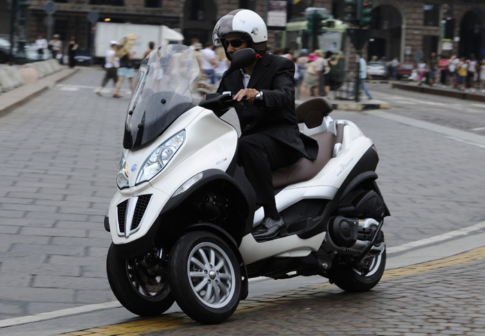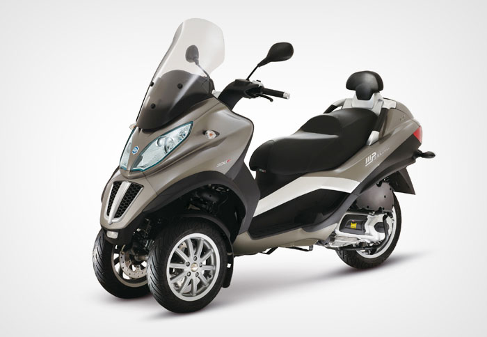 Τρείς τροχοί, δύο μπροστά, είναι η επαναστατική τεχνική φόρμα στην οποία βασίστηκε η μοναδική επιτυχία του Mp3, ενός σκούτερ μοναδικού στον κόσμο που, με την καινοτομική λύση των δύο μπροστινών ανεξάρτητων και με δυνατότητα κλίσης τροχών, έχει επανακαθορίσει την ίδια την έννοια της δυναμικής σταθερότητας.