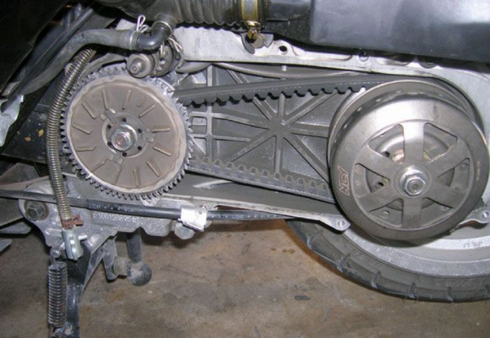 Η απομάκρυνση ή σύγκλιση των δύο δίσκων των τροχαλιών ελέγχεται από ένα φυγοκεντρικό στην τροχαλία του τροχού. Ανοίγοντας το γκάζι, ο κινητήρας ανεβάζει στροφές και εμπλέκει ο φυγοκεντρικός συμπλέκτης. Αυτός παρασέρνει την τροχαλία που βρίσκεται στο άκρο του, η οποία αυτή τη στιγμή βρίσκεται ανοιχτή με τον ιμάντα στη μικρότερη δυνατή διάμετρο. Ο ιμάντας κινεί την τροχαλία του τροχού, αναγκάζοντας τον τελευταίο, και κατ΄ επέκταση το scooter σε κίνηση.